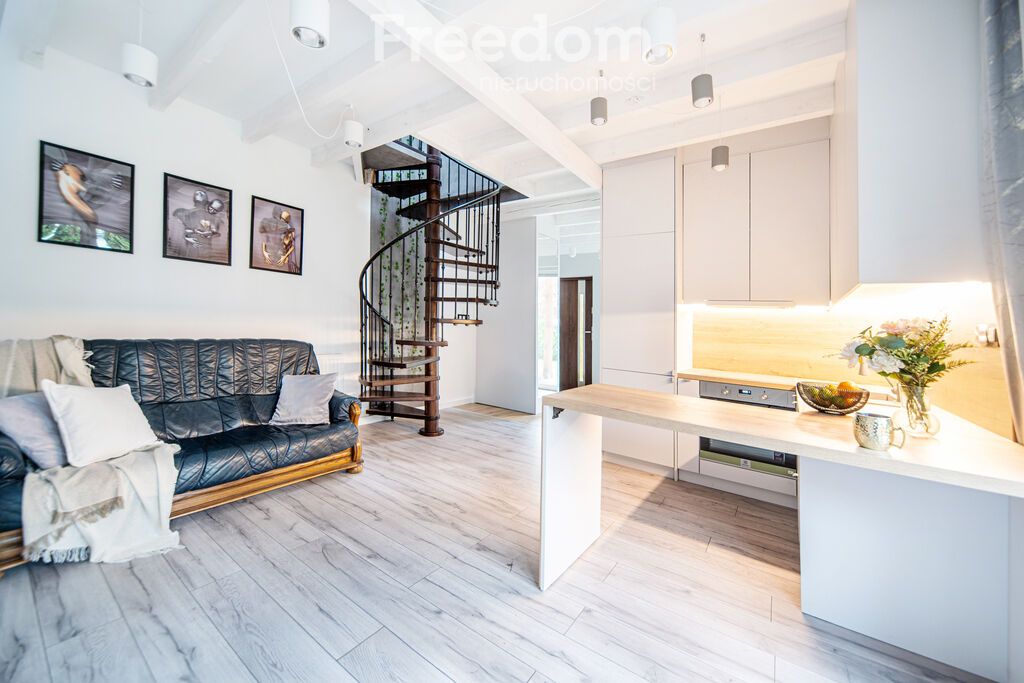 Dopełnia ją aneks kuchenny z pełnym wyposażeniem oraz łazienka z